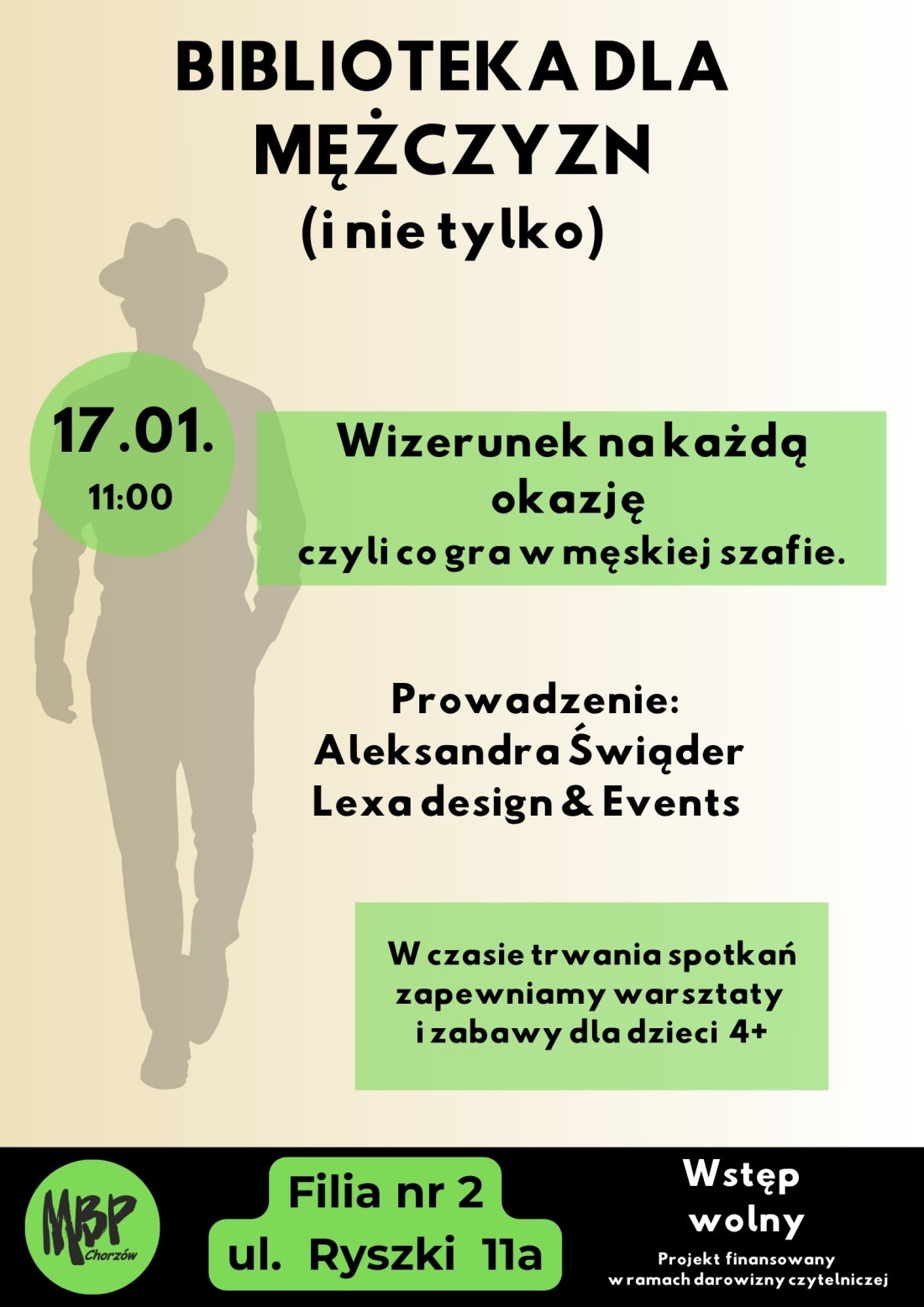 Wizerunek na każdą okazję, czyli co gra w męskiej szafie. Prowadzenie Aleksandra Świąder Lexa designe&Events. Informacje pod nr tel. 789 325 529.